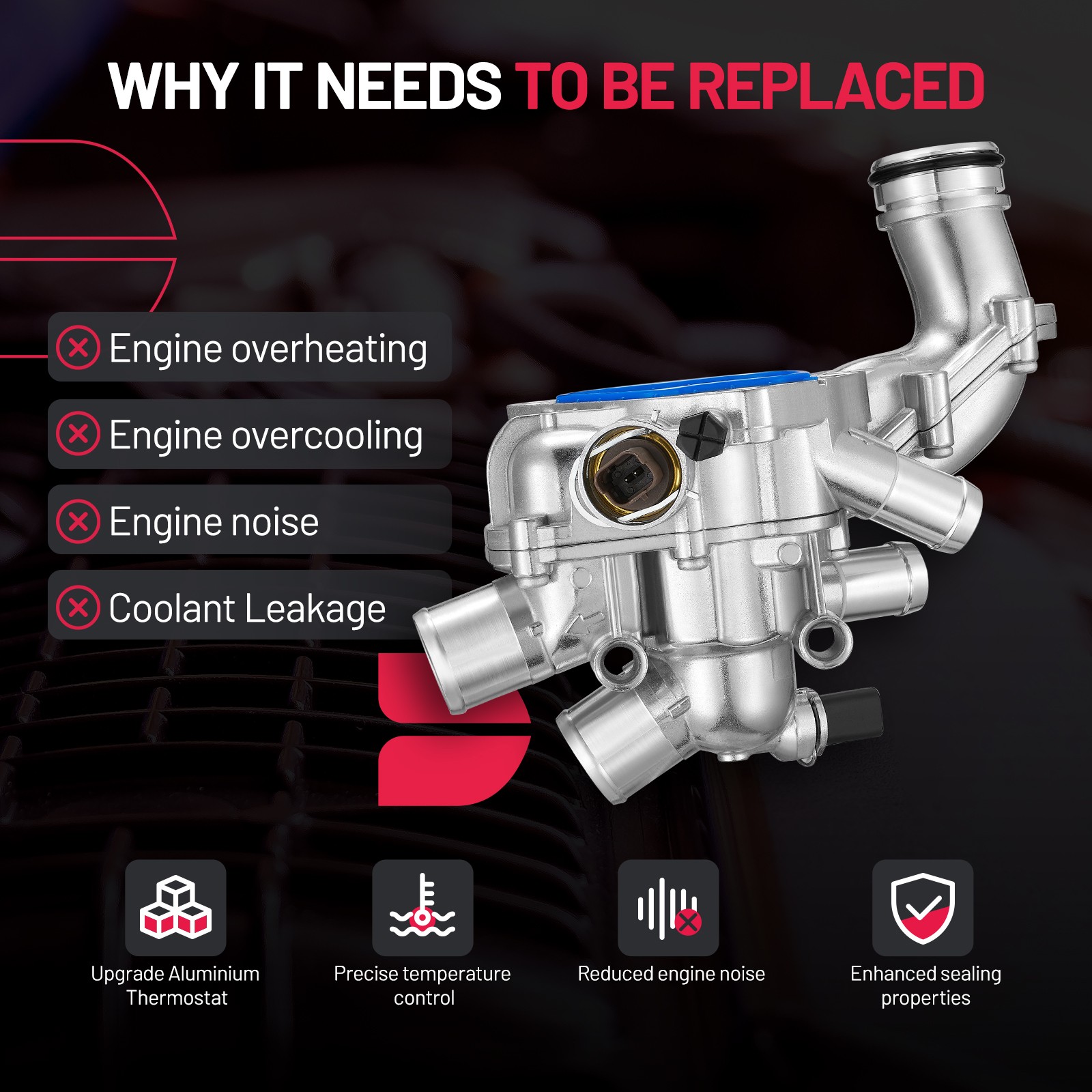 Fitment For Mini: 2007-2013 Cooper 1.6L 2011-2013 Cooper Countryman 1.6L 2013-2015 Cooper Paceman 1.6L Attributes Brand:TEMBOR UPC:Does not apply. Condition:New Manufacturer Warranty:1 Year Material:Aluminum OE/OEM Part Number:11537534521 Opening Temperature:105℃= 221.0000℉ Type:Thermostat Housing Assembly Key Benefits Durable aluminum construction ensures long-lasting performance. Designed to maintain optimal engine temperature and efficiency. Includes a detailed instruction manual for easy installation. Backed by a 1-year manufacturer warranty for peace of mind. Installation Guide Ensure the engine is cool before starting the installation. Remove the old thermostat and clean the mounting surface thoroughly. Install the new thermostat assembly in the correct orientation. Tighten all bolts to the manufacturer's specifications and reconnect any hoses as necessary. Important Notes Please verify the OE/OEM part number 11537534521 to ensure compatibility. Opening temperature is rated at 105℃ (221℉). This product is designed for new installations and replacements only. Handle with care to avoid damage during installation.
