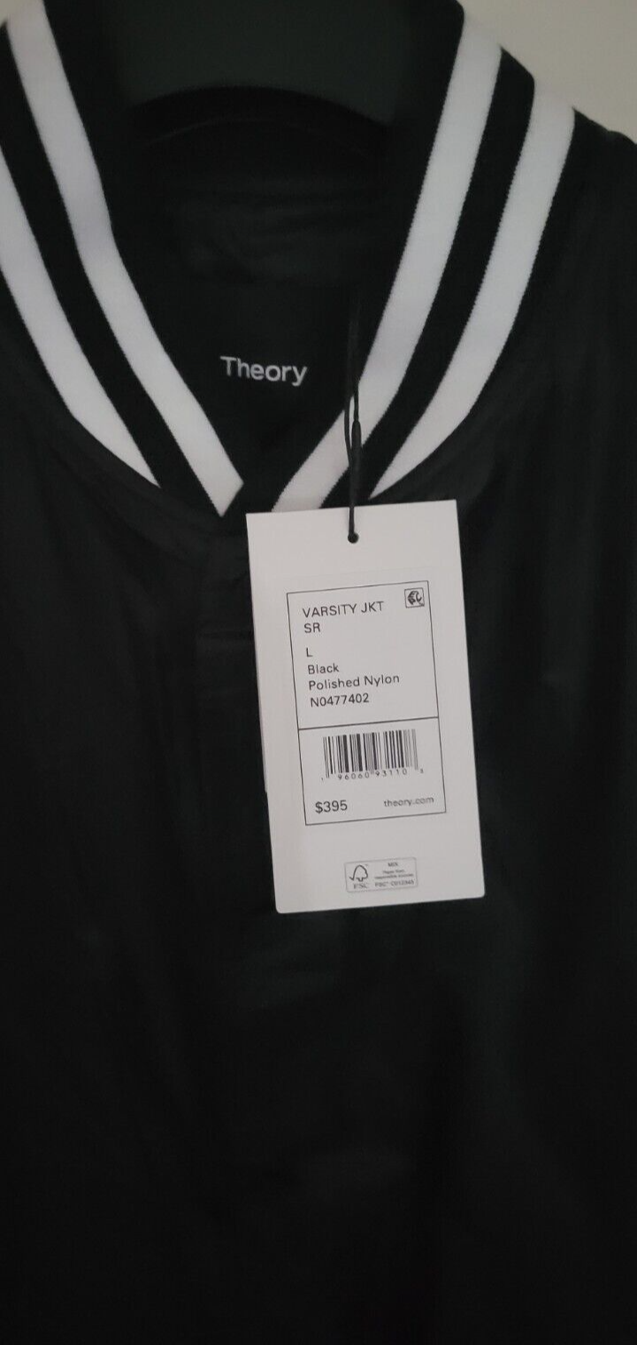 Elevate your outerwear with the Theroy Varsity Polished Large Jacket, a seamless blend of style and comfort. Crafted from durable black nylon, this regular-sized varsity jacket features a matching nylon lining, ensuring a smooth, non-bulky fit that's perfect for layering. With its classic varsity design, this jacket is an ideal choice for those crisp evenings or as a stylish addition to your casual daytime attire. The jacket boasts the timeless appeal of Theroy brand apparel, delivering both durability and a sleek, modern silhouette that complements any look.