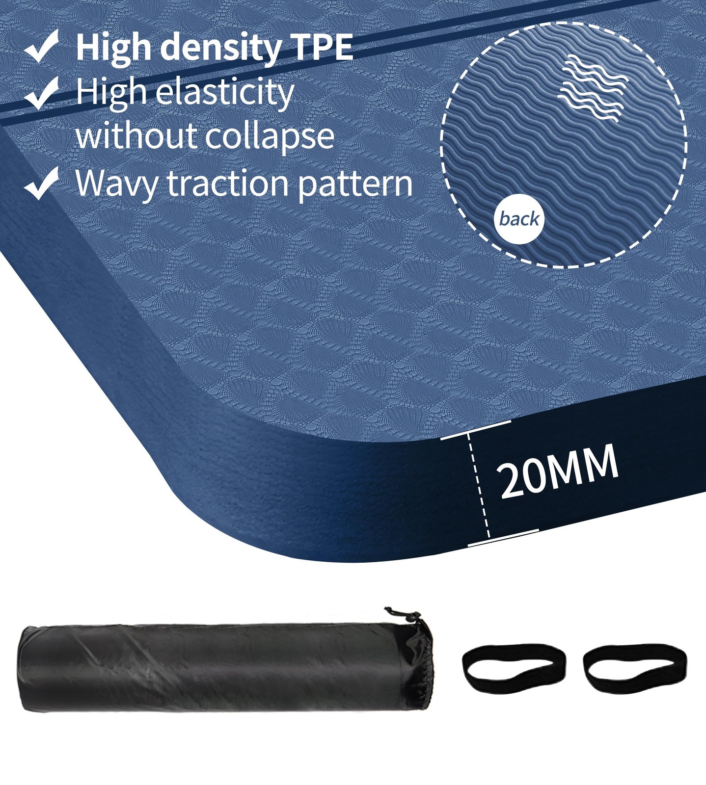🌹'S SAFE & DURABLE YOGA MAT: Our Non Slip Yoga Mats Made of high quality skin-friendly professional material, ,made by high density foaming tech, tear resistant, wear resistant, quick rebound. PVC free, non toxic, eco-friendly, skin friendly. Durable yoga mat for men home gym exercise. 🌹NON SLIP SURFACE FOR ADDED STABILITY: The oversized mat has textured surface to enhance traction that you can perform any movement with confidence. Non-slip design aids in balance to hold postures much more longer and protect your joints and knees without compromising support or stability. 🌹FOR WHOEVER YOU ARE: For beginners who isn't sure that you want to stick with yoga but want to give it a shot, just be brave to try. For sports lovers, it's easier to develop good habits of workouts with the exercise mat. For hard workers who have little time to exercise, use it to keep fit or take a nap. For moms and kids, use it to enjoy the time of love. 🌹EXTRA LONG EXTRA WIDE: 's 72"x32"/78"x36" offers adequate space to fit any type of exercise like yoga, pilates, bikram, and fitness exercise.Most yoga mats on the market are 6mm, 8mm or even thinner. This yoga mat is thickened to 15mm,20mm,30mm which can provide more support and protection for your ankle, knees, joints, and body on hard floors, as well as absorbs vibration and reduces noise. 🌹CARE INSTRUCTIONS: Spot clean with damp cloth with cold water and mild detergent, Dry flat. Pls don't exposed to the sun for extended periods of time,we accept your return for full money refund with 30 days,100% satisfaction of after-sale service.