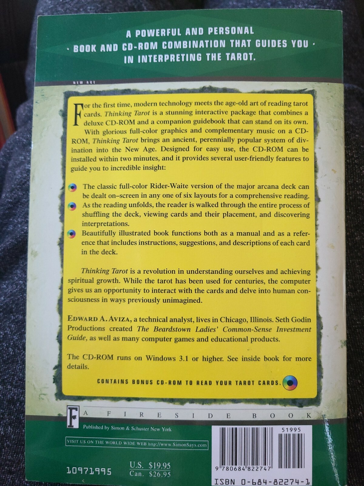 Dewey Edition:21Number of Pages:224 PagesSynopsis:A guidebook on the ancient art of reading tarot cards is combined with modern technology in the form of a CD-ROM to produce this interactive package. The book includes descriptions of the cards and a history of the tarot. The CD carries full-colour graphics and complementary music.LCCN:97-010329Item Length:9.2 inGenre:Body, Mind & SpiritItem Width:6.2 inItem Height:0.6 inbrand:TouchstoneIntended Audience:TradeDewey Decimal:133.3/2424Book Title:Thinking Tarotgtin13:9780684822747Publication Year:1997Format:Trade PaperbackPublisher:TouchstoneIllustrator:YesISBN-13:9780684822747Item Weight:12 OzAuthor:Edward A. AvizaISBN-10:0684822741Topic:Divination / Tarot, GeneralLanguage:EnglishLC Classification Number:BF1879.T2A96 1997
