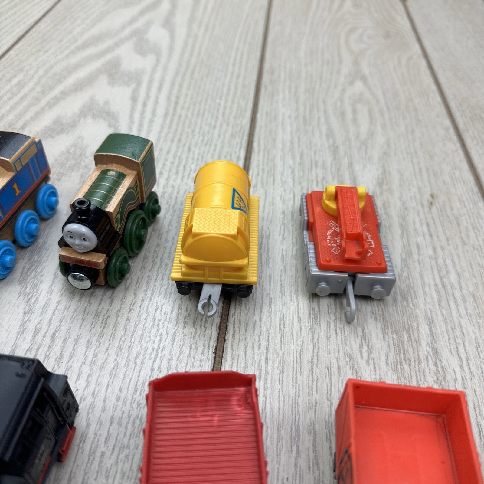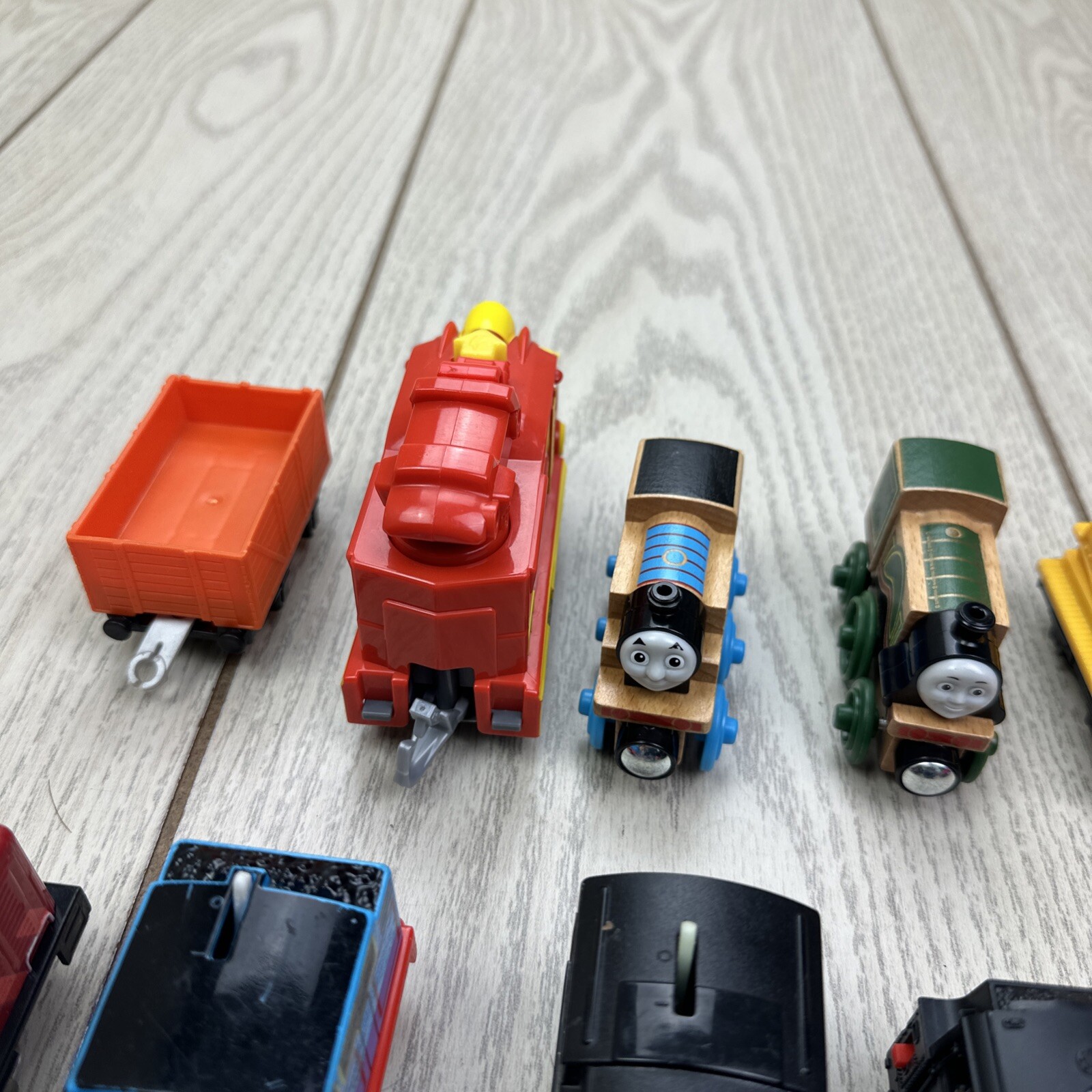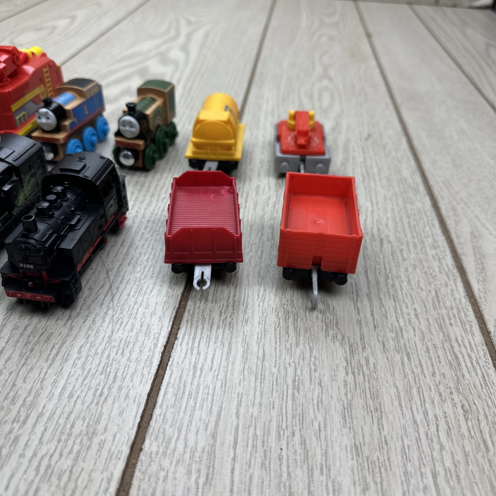 *2 of the trains are not Thomas branded* The "Thomas & Friends Trains Magnetic Plastic Motorized Assorted Lot Of 11" includes various Thomas the Tank Engine characters like Thomas the Train, specifically the model Millie from the Minis series. These multicolored trains are made of mixed materials and plastic, featuring motorized action. Manufactured in 2014, these Gullane-branded vehicles are part of the Thomas & Friends franchise, suitable for play and inspired by the TV show "Thomas The Train." Each train in this mixed lot is in the scale appropriate for the Minis series, offering a fun and engaging play experience for fans of Thomas & Friends.