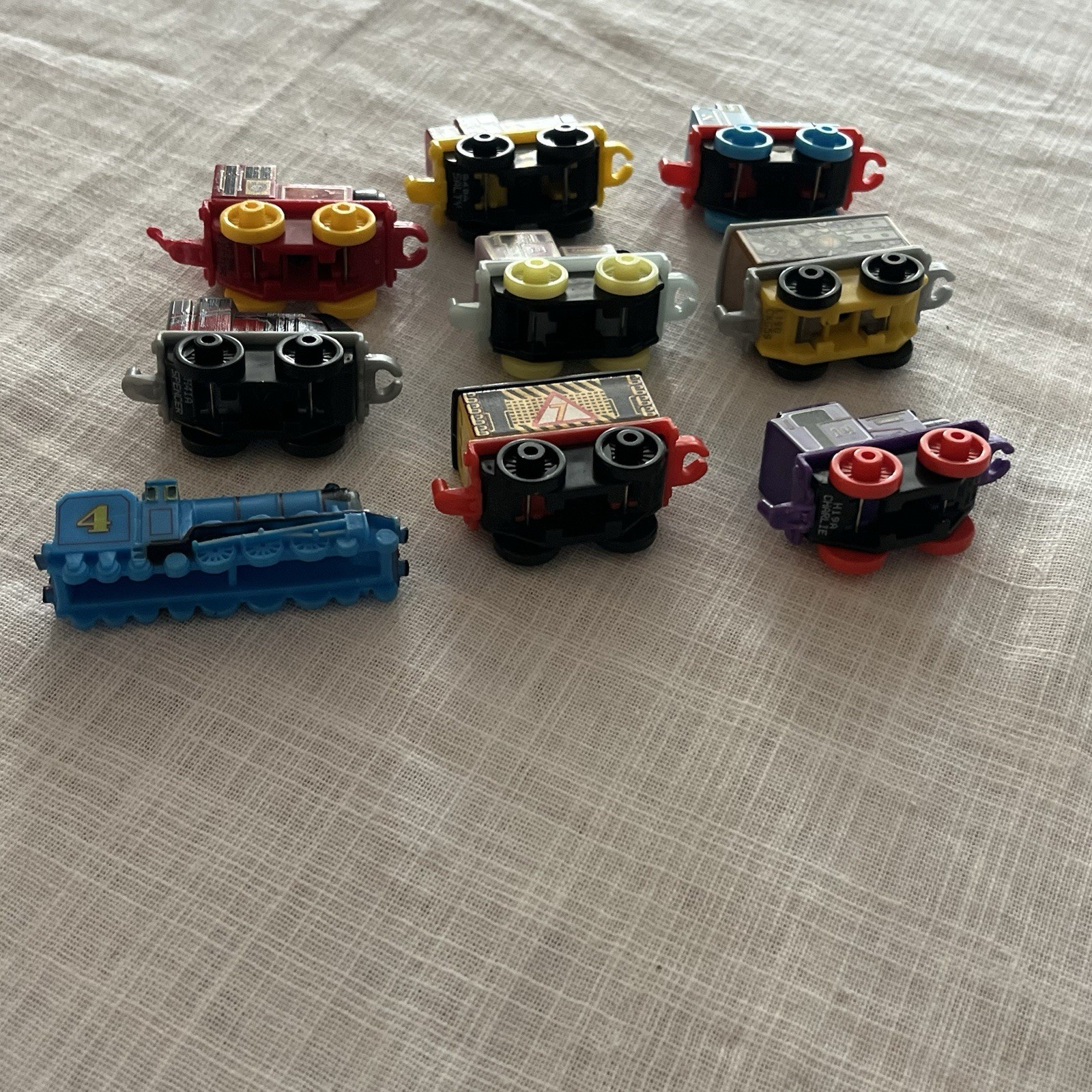This assorted lot of 9 Thomas & Friends Minis features a mixed lot of action figures, all standing at 2 inches tall and 1 inch wide. These miniature characters are based on the popular TV show and movie, Thomas & Friends, with original branding by Mattel. Made of plastic, these colorful figures are perfect for young fans aged 3 and up, and are designed in the signature train vehicle type. Each figure represents a character from the beloved franchise, making them a fun and collectible addition to any action figure collection.