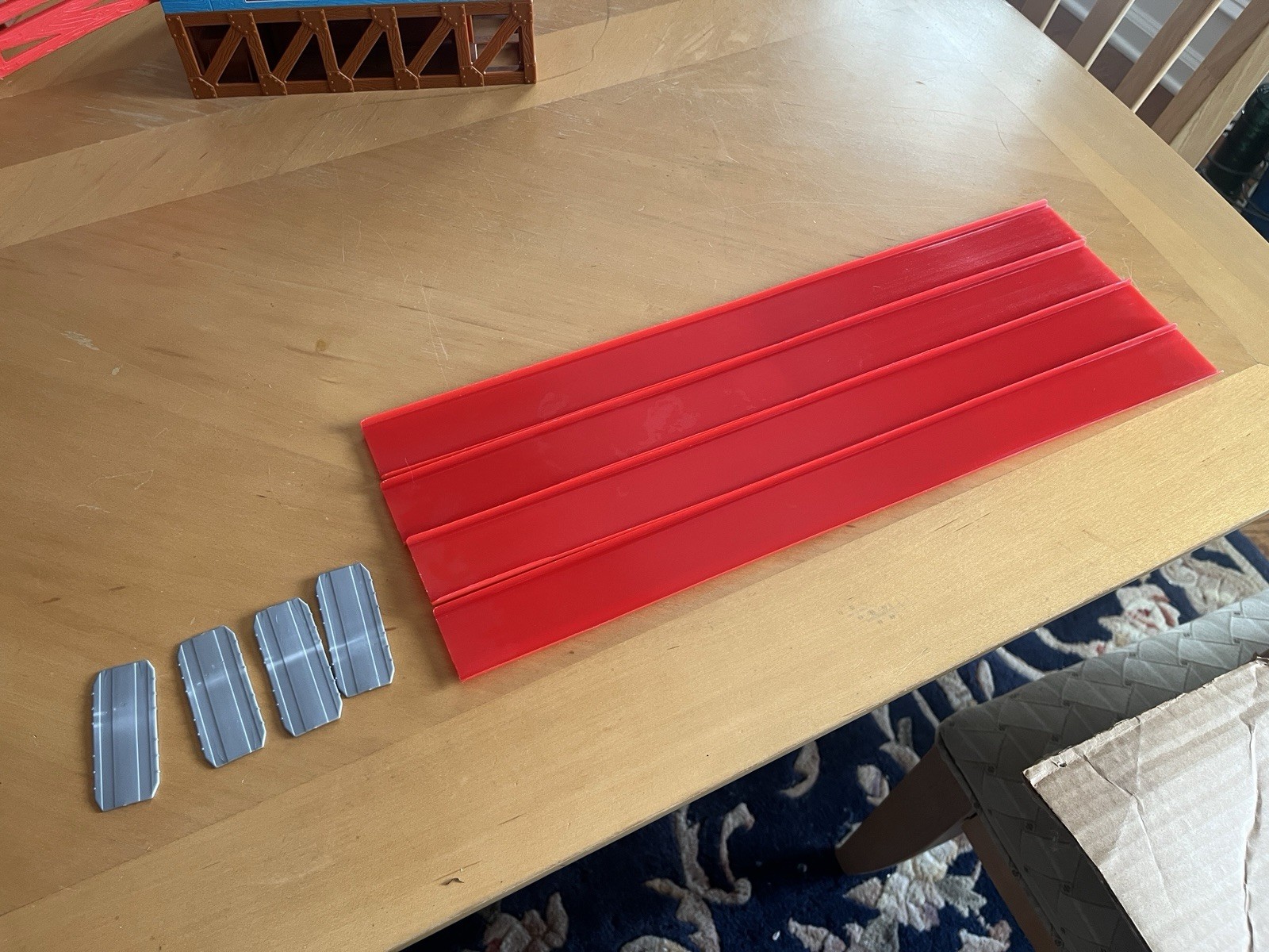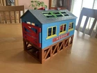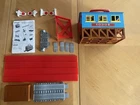 This is the Take-Along The Great Race set. Take your trains and race them down through the Sodor Covered Bridge and past the finish line! This set is in very good condition but it is only ~80% complete. It comes with all original parts, including the instructions and ramp pieces (not pictured), EXCEPT -Starting Gate connecting holder -Take-Along Thomas and Bertie -2x Spare Track Connectors Despite this, the set is in perfect condition for play. Additionally, it works well as spare parts to make a completed set.