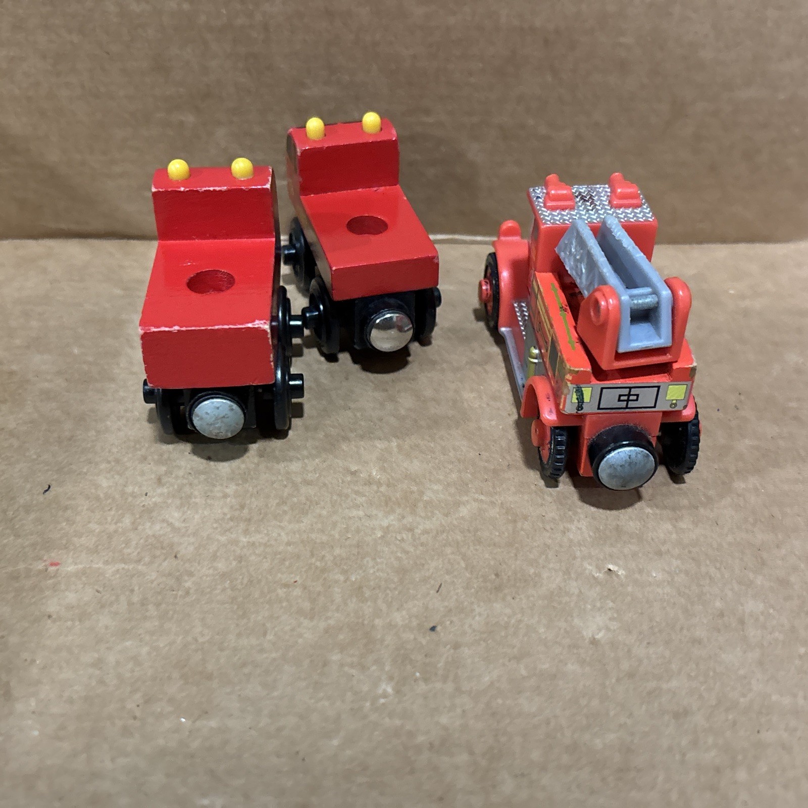Thomas & Friends FLYNN & Fire Engines Red Wooden Railway Train Tank Engine / see photos. Ships usps ground.