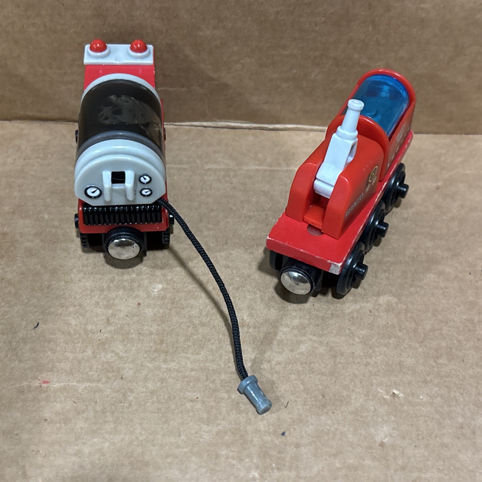 Sodor Fire Brigade Train & Water Tanker Thomas Friends Wooden Railway Train Car 2003 - ships usps ground advantage. The water tanker is like black inside. Not watery.