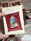 The product is a lot of 10 Thomas Kincade Hallmark Keepsake ornaments. These ornaments are part of a collection of Hallmark ornaments, featuring intricate designs and craftsmanship by Thomas Kincade. Each ornament is a unique addition to any holiday or seasonal decor, making it an excellent addition to any collector's display.