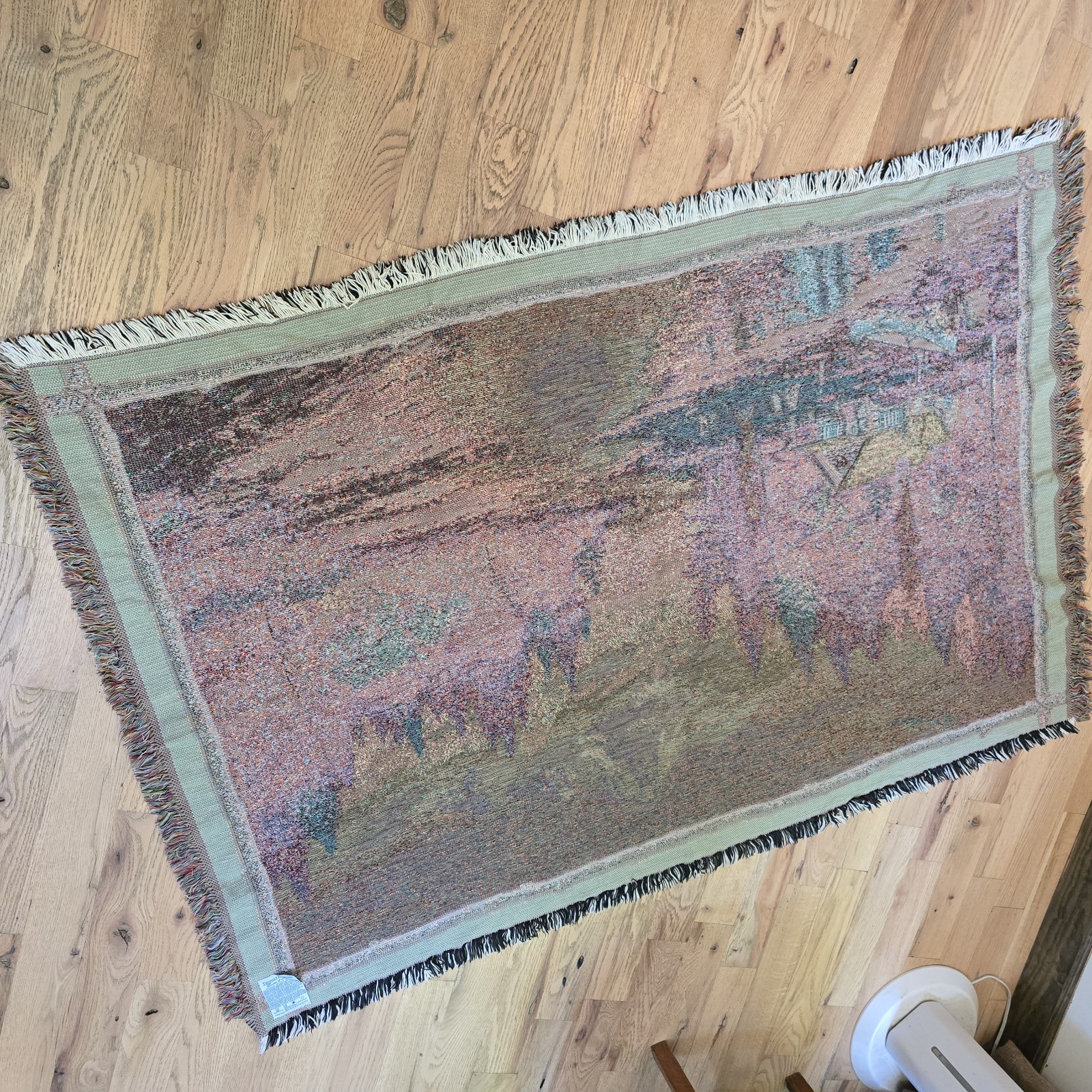 The Thomas Kinkade Fringed Throw Blanket in the Mountain Cabin pattern is a rare and unique addition to your home décor. Made of acrylic material, this rectangle-shaped sofa throw features a colorful cabin theme with fringed edges. Measuring 64 inches in length and 43 inches in height, this traditional style blanket is perfect for any room in your home. The intricate design and quality craftsmanship of Thomas Kinkade make this throw a cozy and charming choice for adults to enjoy.