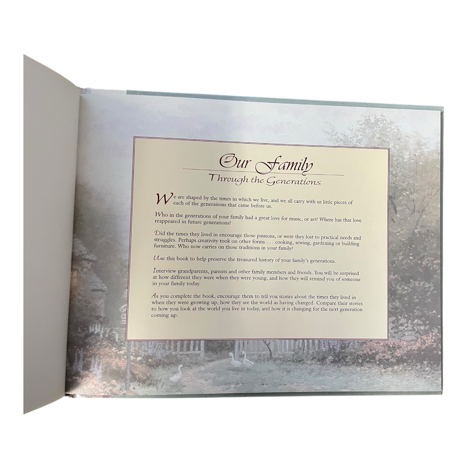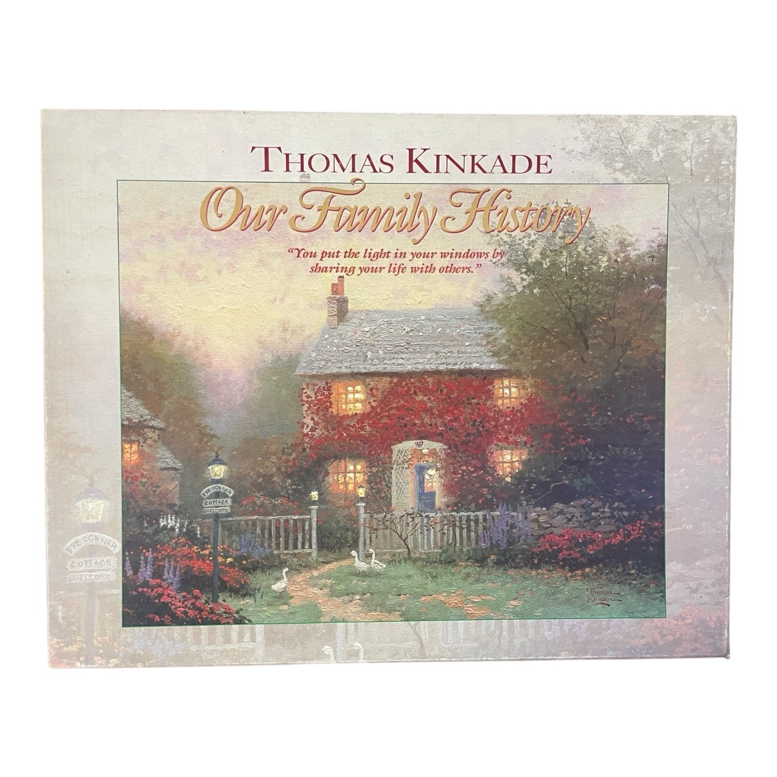 The Thomas Kinkade Our Family History Through The Generations Book is a 96-page hardcover book published in 1998 by Peggy Pinson. Written by Thomas Kinkade, the book is a first edition nonfiction narrative focusing on family history. It includes illustrations and is geared towards an adult audience interested in exploring their family lineage through the generations. The book measures 5.5 inches in length, 5.4 inches in width, and 0.5 inches in height, making it a compact and insightful addition to any family history enthusiast's collection.