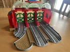 This is a Take Along Talking Knapford Station destination, featuring lights, sounds, and easy foldability to transport on the go. The item is in good condition and comes with the station itself and the often-lost ramp section. This item does not come with any engines or track. The item is missing one holding clip but still functions well.