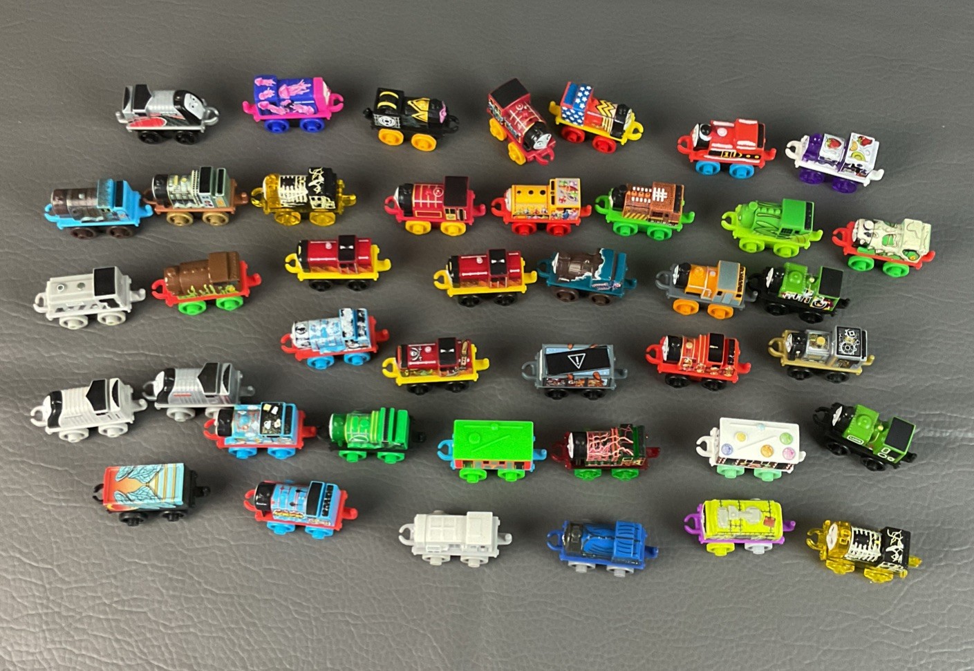This product is a Thomas The Train Minis playset that includes a storage case and tray, along with 41 mini trains featuring characters from the Thomas & Friends franchise. Made of plastic, these toy trains are inspired by the popular cartoon and TV show, making them a perfect addition to any young fan's collection. With Thomas the Train Engine and Thomas the Tank Engine as the main characters, this set allows children to recreate their favorite scenes from the show and embark on their own train adventures.