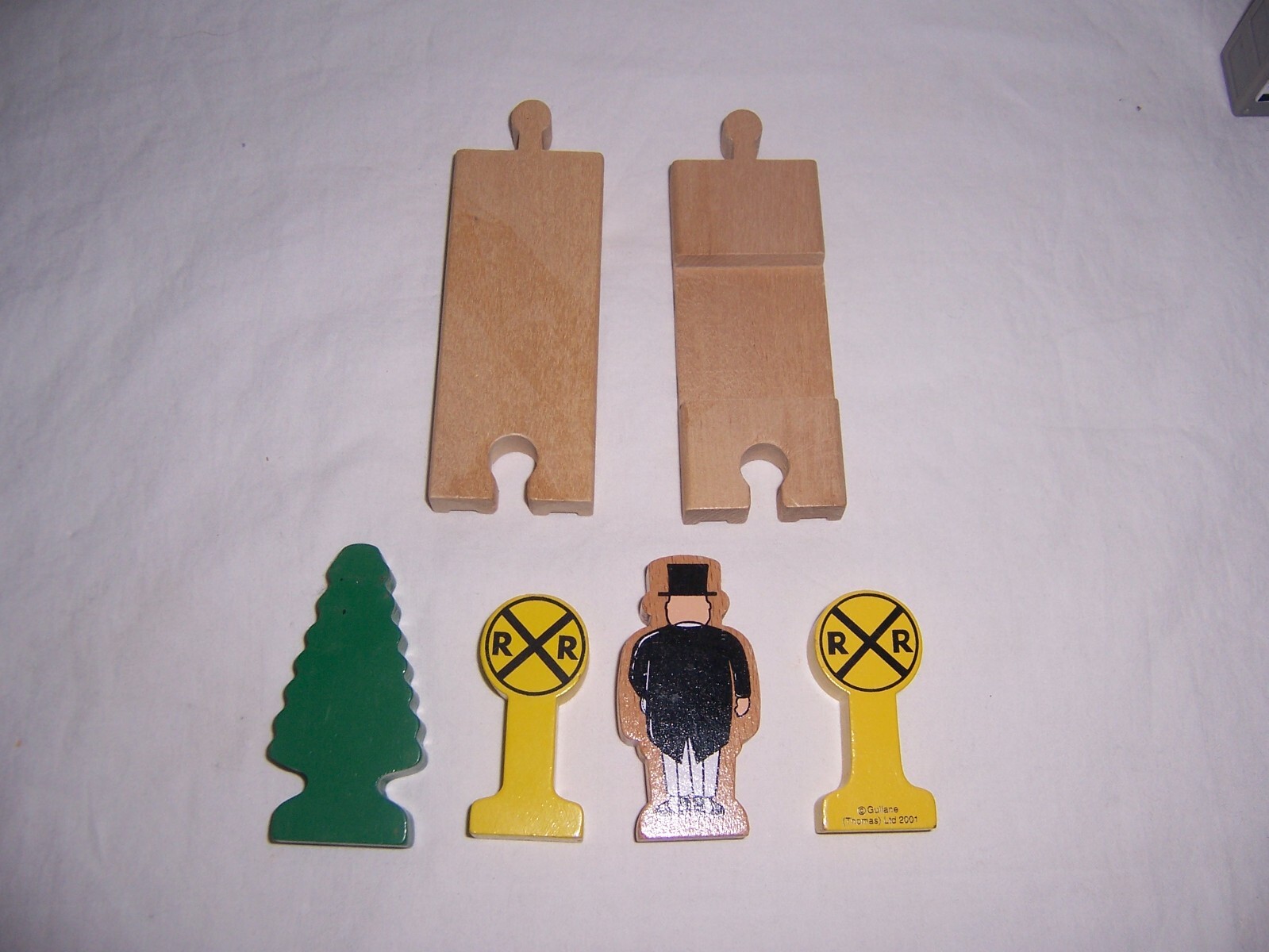 This Auction is for the Thomas Wooden Railway Cross Over Track and Accessories Pictured The Intersection Track has Clickety Clack Grooves Two R R Signs One Tree and Sir Topham Hatt Figure Shipping in the USA is $5.99
