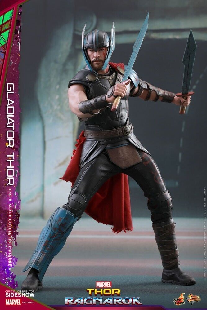 Hot Toys – MMS445 – Thor: Ragnarok – 1/6th Scale Gladiator Thor (Deluxe Version) The 1/6th scale Gladiator Thor (Deluxe Version) Collectible Figure specially features: - Newly developed head sculpt with authentic and detailed likeness of Chris Hemsworth as Thor in Thor: Ragnarok - Movie-accurate facial expression with detailed wrinkles, skin texture and beard - Brown color short hair sculpture - A red Gladiator marking on his head sculpt and neck - Muscular body with over 30 points of articulations and seamless elbow joints - Approximately 32 cm tall - Four (4) pairs of interchangeable hands including: - One (1) pair of fists - One (1) pair of relaxed hands - One (1) pair of open hands - One (1) pair for holding weapons - Each piece of head sculpt is specially hand-painted Costume: - One (1) single shoulder red-colored cape (detachable) - One (1) black-colored upper body armor with red Gladiator markings - One (1) blue and metal-colored left arm armor with red Gladiator markings - One (1) metal-colored right forearm armor with leather-like strap - One (1) cross-body leather-like belt - One (1) pair of black pants and black-colored knee-pad with red Gladiator markings - One (1) blue-colored right leg armor - One (1) pair of black-colored boots with leather-like strap Weapons: - One (1) long Einherjar Sword*** - One (1) short Einherjar Sword*** - One (1) Sakaar Rifle*** - Two (2) swords - Two (2) daggers (can be placed into the sheath) - One (1) dagger sheath - One (1) red and metal-colored mace *** Exclusive to Deluxe Version Accessories: - One (1) grey and blue colored articulated helmet - One (1) red, blue and gold colored shield - Specially-designed figure stand with character nameplate and the movie logo Due to the light and screen difference, the item's color may be slightly different from the pictures. Please allow 0.5-2 cm differences due to manual measurement. Thank you for your kindly understanding. Payment Delivery details Terms of sales Feedback Contact us Payment When you buy the goods please as soon as payment success, so we can as soon as shipping item. Payment please be sure your shipping address is correct. Delivery details Shipping Time Approx:15-35 days United States transportation time is short. Because we in china, International transportation, We can not guarantee the shipping time. The shipping maybe a little long, hope you can understanding and patience wait . If you'd like to receive these goods earlier, it requires the charge additionally. Terms of sales Please allow 1-2cm differs due to manual measurement. The real color of the item may be slightly different from the pictures shown on website caused by many factors such as brightness of your monitor and light brightness. Import duties, taxes, and charges are not included in the item price or shipping cost. These charges are the buyer's responsibility. Please check with your country's customs office to determine what these additional costs will be prior to bidding or buying. Feedback Our customers are priority!Making you satisfied is very important to us. Please notify us before posting any negative feedback. You can be guaranteed that we will do make your purchase an enjoyable experience. Contact us Please feel free to ask any questions. We will get back to you as quickly as we can.