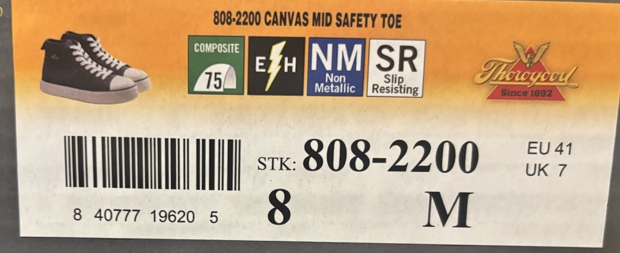 Thorogood Steel Toe Work High Tops 808 2200 Size 8 Mens Gray