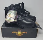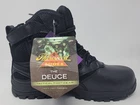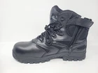 Thorogood duece z-trac 6" waterproof side zip composite safety toe 11.5 W Boots Thorogood The Deuce Series Waterproof 6″ Composite Safety Toe Tactical Side-Zip boots in UK size 10.5 and US size 11 1/2 W. Designed for workwear, they feature a solid black color with ankle shaft style and zipper closure. The boots are slip-resistant, waterproof, and electric shock resistant, with a composite safety toe and Z-Trac ASR outsole. The removable Shock Zone Polyurethane insole provides comfort and support.