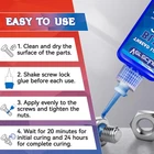 Value 2-Pack Thread Lock: Medium-strength blue threadlocker 242 and high-strength red threadlocker 271, providing a wide range of options for your various needs. For all household iterms with screws, lock tight threadlocker can fasten bolts & nuts for a long time to avoid loosening due to vibration, and prevent the bolts from corroding and rusting. Family must-have to extend the life of items and safe using Waterproof and Anti-rust: Using thread locker cores instead of solid gaskets, close contact, perfect sealing, heat-resistant and waterproof, provide a strong and consistent lock ensuring durability against leakage, corrosion, and loosening, ideal for indoor and outdoor use Easy to Use: Simply apply the locktight thread locker evenly to the Fixing Position of the Bolt & Nut, tighten the nut, and cure initially for 20 minutes, then fully cure within 24 hours. Screws coated with medium-strength threadlocker can be removed directly with hand tools Wide Application: Whether you're working on automotive repairs, tightening furniture screws, or handling industrial tasks, threadlocker blue and threadlocker red's reliable performance and versatility make it ideal for automotive, industrial, and furniture use, eliminating the need to stock up on expensive lock nuts and washers, saving your money and time Intimate After-Sales Service: If you are not satisfied with the screw lock glue you received, or the thread locker spilled due to transportation, you can contact us at any time and we will provide you with satisfactory service