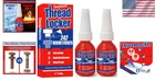 Thread Lock Medium Strength - Blue Lock Tight Threadlocker Prevents Nuts from... ‹ › ‹ › ‹ › ‹ › ‹ › ‹ › ‹ › ‹ › ‹ › Blue Lock Tight Thread Locker - Medium Strength Preventing nuts and bolts from loosening due to vibration has never been easier! Features: Designed for use on both active metals and passive substrates including brass, copper, stainless steel, and galvanized surfaces. Prevents rust and corrosion by ensuring a close contact seal. Effectively prevents leakage, providing peace of mind during application. Multi-purpose adhesive suitable for various automotive, industrial, and furniture applications. Perfect for valve covers, bicycle and motorcycle parts, and furniture assembly. Easy to apply; simply spread evenly on threads and tighten nut. Cures quickly: initial set in just 10 minutes, and fully cured within 24 hours. Ideal for nut and bolt applications ranging from ¼" to ¾" (M6-M20). Benefits: Long-lasting hold that maintains tightness over time. Reduces the risk of premature loosening and wear, enhancing the longevity of your fixtures. Versatile enough to be used across various projects, from home improvement to automotive repairs. User-friendly application ensures a hassle-free experience, making it suitable for professionals and DIY enthusiasts alike. Why choose our Blue Thread Locker? Our Blue Lock Tight Thread Locker is your reliable solution for securing your projects against unwanted vibrations. With its medium strength formula, it guarantees a tight bond, protecting your nuts and bolts while preventing rust and corrosion. Whether you're tackling automotive tasks, industrial jobs, or home furniture assembly, our thread locker is the trustworthy companion you can depend on. Don't let vibrations ruin your hard work — elevate your projects to a new standard of reliability. Order your Blue Lock Tight Thread Locker today! Shipping Free & Fast Shipping - We offer free shipping to most of the USA with a normal delivery time of 3-7 days. However, due to the current situation, additional delivery time (up to 3 weeks) may be required for some items. Alternative Carriers - We may use alternative carriers (e.g. USPS, FedEx, UPS, etc.) to ensure your package arrives safely and on time. Due to the use of multiple carriers, we are unable to provide a tracking number automatically. Handling Time - Orders are processed and shipped within 1-2 business days of receiving cleared payment. Shipping Restrictions - Shipping to Alaska, Hawaii, Puerto Rico, Guam, and other US territories may incur shipping charges or delivery restrictions. Please contact us before ordering, or your order can be refunded/cancelled. State Restrictions - There may be restrictions based on your state of purchase. For example, certain items may not be shipped to California due to state regulations. Contact for Tracking Updates - If you require tracking updates or have any concerns about the delivery of your order, please feel free to contact us, and we will be happy to assist you. Return 30-Day Hassle-Free Returns - We want you to be completely satisfied with your purchase. If you are not, you can return the item within 30 days of receiving it for a full refund or exchange. Easy Return Process - To start a return, simply contact us and we will provide you with a prepaid return shipping label and detailed instructions. Restocking Fee - There are no restocking fees for returns. However, the buyer is responsible for return shipping costs if the return is not due to a seller's error. Refund Processing Time - Refunds will be processed within 5 business days of receiving the returned item in its original condition. Payment We accept all major credit cards, PayPal, and Apple Pay for your convenience. Your payment information is secure and encrypted to ensure a safe and seamless transaction. Please complete your payment within 3 days of purchase to avoid any delays in shipping. Feedback Your feedback is extremely important to us. We strive to provide the best products and customer service possible. If you are satisfied with your purchase, please take a moment to leave us a positive review. If you have any concerns or issues with your order, please contact us before leaving negative feedback. We are committed to resolving any problems and ensuring your satisfaction. Contact Us If you have any questions or concerns, please feel free to reach out to our customer support team. You can contact us through the eBay messaging system. We are available Monday to Friday, 9:00 am to 5:00 pm EST, and we will do our best to respond to your inquiry within 24 hours. Buy it now and enjoy a pleasant shopping experience! UPC: Does Not Apply Model: Does not apply MPN: Does not apply Expiration Date: Granted Fresh Unit Quantity: 1.45 Product Dimensions : 1.57 x 0.39 x 0.39 inches; 1.45 ounces Type: Thread Lock Package Dimensions LxWxH: 1.57 x 0.39 x 0.39 inches Specific Uses For Product: Automotive, Industrial, Furniture Color: Blue Item Form: Liquid Item model number : 242 Material: Thread Lock Compatible Material: Brass Weight: 1.45 Brand: Unbranded Country/Region of Manufacture: United States Unit Type: Unit