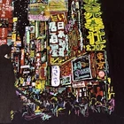 This is a medium-sized Threadless T-shirt featuring a graphic print of Godzilla in a neon Kaiju city setting. The design has an anime-inspired style with a kooky and loveable theme. Made of lightweight cotton knit fabric, this crew neck T-shirt with short sleeves is suitable for all seasons. Ideal for fans of anime, Japan, and outdoor themes, this unisex adults' tee is machine washable and suitable for everyday wear.