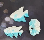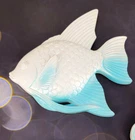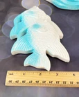 BRAND: 1990 Miller Studio Chalk Painted Angle Fish, Coral, Seashell and Algae Wall Plaques. Made in USA. COLORWAY: Turquoise and White will Iridescent Pearl Over Spray. MATERAIL: Chalk and Paint. SIZES: Large Angel Fish - Approximately 6" Long and 5.5" Wide. Double Angel Fish - 5.5" Long and 3" Wide. Seashell, Coral and Algae - 5.5" Long and 3" Wide. CONDITION: Pristine condition despite the age. The paint is lovely and bright. I was not able to capture the iridescent pearl effect on each item in my photos. They are beautiful in real life. There are no signs of chips, cracks or damage. The back of each piece has an embedded loop for hanging. If you love a vintage look these sweet fish are perfect. Please see my photos for exact detail. Thank you as always for shopping my store today and have a fantastic evening!!