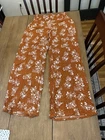 Three Dots Womens Sz Large Boho Style Casual Pants, Burnt Orange W/Flowers