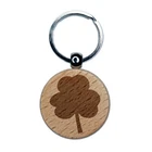 Three Leaf Clover Solid Engraved Wood Round Keychain Tag Charm