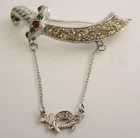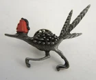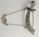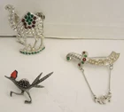 Three vintage pins made expressly for the Fez hat. The first is a colorful camel with white, red, and green rhinestones. The camel is 2 1/4" tall x 1 1/2" wide. The sword displays the same color rhinestones with a drop chain with complimenting sword. 2 5/8" wide. The roadrunner is wearing a red enamel fez with black tassels. 1 1/2" tall x 1 7/8" wide. Marked on the By Klitzner? All are in excellent condition with no losses. Three Vintage Fez Pins - Roadrunner * Camel * Sword Three Vintage Fez Pins - Roadrunner * Camel * Sword Click images to enlarge Description Three vintage pins made expressly for the Fez hat. The first is a colorful camel with white, red, and green rhinestones. The camel is 2 1/4" tall x 1 1/2" wide. The sword displays the same color rhinestones with a drop chain with complimenting sword. 2 5/8" wide. The roadrunner is wearing a red enamel fez with black tassels. 1 1/2" tall x 1 7/8" wide. Marked on the By Klitzner? All are in excellent condition with no losses. Get images that make Supersized seem small. Showcase your items with Auctiva's Listing Templates! THE simple solution for eBay sellers. Track Page Views With Auctiva's FREE Counter