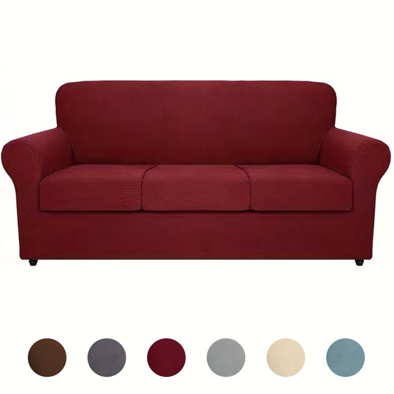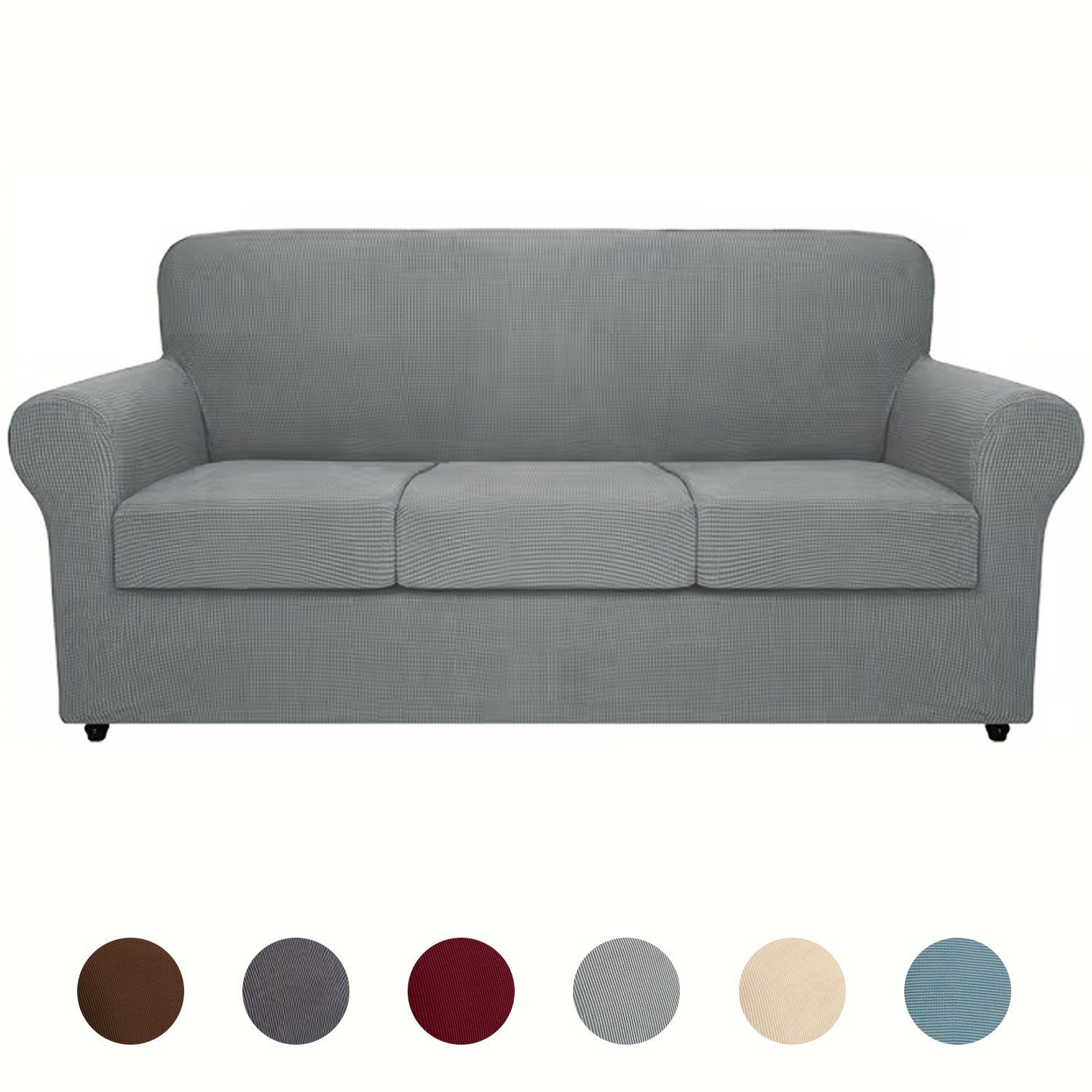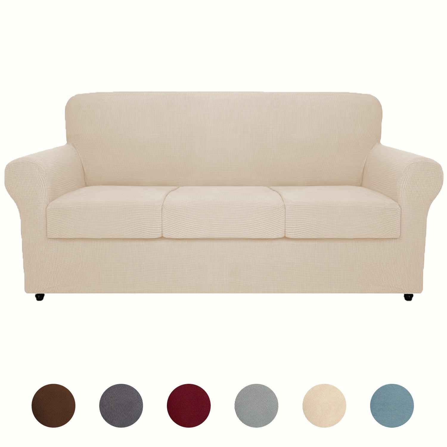 High-quality materials: The sofa cushion cover is made of 92% polyester fiber and 8% spandex, which is elastic and durable; it is soft and comfortable. Our multi-functional sofa cover has high flexibility and can be more flexibly applied to various sofas, such as T-shaped sofas, box-style sofas, high-backed sofas, small and extra-large leather sofas. The improved thick fabric is more durable. Two-piece design: The cushion cover is designed as a two-piece set, including the base cover and the cushion cover. Covering the cushion separately not only hides the excess fabric under the cushion but also solves the rebound problem. The anti-slip sofa cover is suitable for furniture with a width of 31 - 49 inches. Please measure the size of your furniture before purchasing. Comprehensive protection: The universal cover provides 360-degree all-round protection for your sofa, resisting daily stains, accidental tears, scratches or bite marks. The sofa furniture cover can also transform your old and worn-out sofa into the focus of the living room. Our sofa covers are especially suitable for families with children and pets, saving you money by extending the lifespan of the sofa. Stay in place: This elastic fabric is made of thick elastic fabric, which can well cover the bottom edges and provide comprehensive protection. The sturdy elastic edges at the bottom can ensure that your sofa cover stays in place without sliding or curling. The separate cushion cover helps the furniture maintain a tight fit, without wearing or wrinkling. This anti-slip sofa cover has an elegant and fashionable appearance, adding decorative effect to your sofa and living room, while also preserving the original shape of the furniture. Installation and maintenance: The furniture protection cover with cushion cover is very easy to install and remove. Please refer to the installation guide in our pictures, and you can complete the installation in a short time by yourself. This independent sofa cover is easy to maintain, only cleaning the dirty cushion cover is enough, without cleaning the entire furniture set. You can gently wash it with cold water, and do not bleach it. View. Do not use bleach; wash it gently with cold water alone.