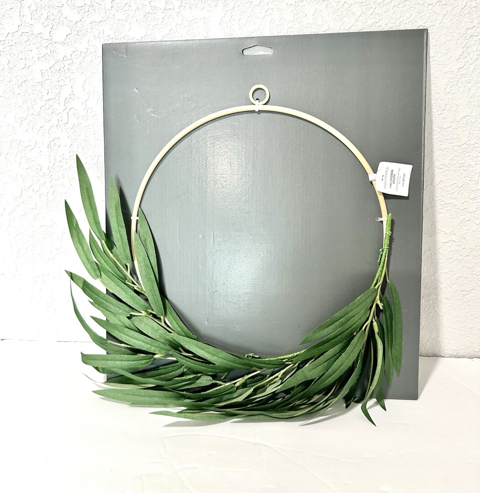 The Threshold Green Faux Greenery Bamboo Wreath Ring Wall Sculpture is a beautifully designed piece of wall decor that adds a touch of floral elegance to any room. Standing at 14 inches in height and width, this wreath is perfect for all occasions and features a lush green color that is sure to bring a natural ambiance to your space. The faux greenery design captures the essence of a thriving garden, making it a versatile and stylish addition to your home décor. New