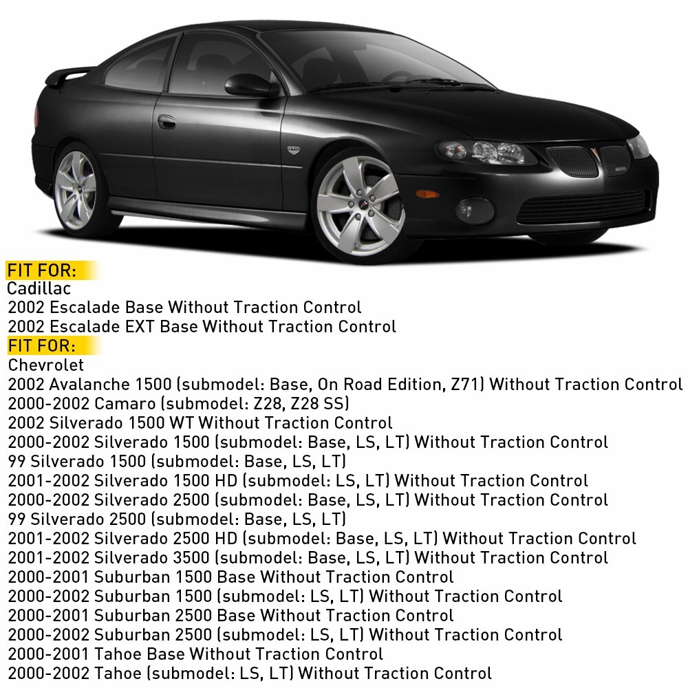 Fit for: Cadillac 2002 Escalade Base Without Traction Control 2002 Escalade EXT Base Without Traction Control Chevrolet 2002 Avlanche 1500 (submodel: Base, On Road Edition, Z71) Without TractionControl 2000-2002 Camaro (submodel: Z28, Z28 SS) 2002 Silverado 1500 WT Without Traction Control 2000-2002 Silverado 1500 (submodel: Base, LS, LT) Without Traction Control 99 Silverado 1500 (submodel: Base, LS, LT) 2001-2002 Silverado 1500 HD (submodel: LS, LT) Without Traction Control 2000-2002 Silverado 2500 (submodel: Base, LS, LT) Without Traction Control 99 Silverado 2500 (submodel: Base, LS, LT) Throttle Sensor Position and Air Idle Control Valve Set For LS Chevy GM Cadillac Fit for: Cadillac 2002 Escalade Base Without Traction Control 2002 Escalade EXT Base Without Traction Control Chevrolet 2002 Avlanche 1500 (submodel: Base, On Road Edition, Z71) Without TractionControl 2000-2002 Camaro (submodel: Z28, Z28 SS) 2002 Silverado 1500 WT Without Traction Control 2000-2002 Silverado 1500 (submodel: Base, LS, LT) Without Traction Control 99 Silverado 1500 (submodel: Base, LS, LT) 2001-2002 Silverado 1500 HD (submodel: LS, LT) Without Traction Control 2000-2002 Silverado 2500 (submodel: Base, LS, LT) Without Traction Control 99 Silverado 2500 (submodel: Base, LS, LT) 2001-2002 Silverado 2500 HD (submodel: Base, LS, LT) Without Traction Control 2001-2002 Silverado 3500 (submodel: Base, LS, LT) Without Traction Control 2000-2001 Suburban 1500 Base Without Traction Control 2000-2002 Suburban 1500 (submodel: LS, LT) Without Traction Control 2000-2001 Suburban 2500 Base Without Traction Control 2000-2002 Suburban 2500 (submodel: LS, LT) Without Traction Control 2000-2001 Tahoe Base Without Traction Control 2000-2002 Tahoe (submodel: LS, LT) Without Traction Control GMC 2000-2002 Sierra 1500 (submodel: SL, SLE, SLT) Without Traction Control 2002 Sierra 1500 (submodel: Base, Denali, HT, WT) Without Traction Control 99 Sierra 1500 (submodel: SL, SLE, SLT) 2001-2002 Sierra 1500 HD (submodel: SLE, SLT) Without Traction Control 2002 Sierra 2500 Base Without Traction Control 2000-2002 Sierra 2500 (submodel: SL, SLE, SLT) Without Traction Control 99 Sierra 2500 (submodel: SL, SLE, SLT) 2002 Sierra 2500 HD Base Without Traction Control 2001-2002 Sierra 2500 HD (submodel: SL, SLE, SLT) Without Traction Control 2002 Sierra 3500 Base Without Traction Control 2001-2002 Sierra 3500 (submodel: SL, SLE, SLT) Without Traction Control 2000-2002 Yukon (submodel: SLE, SLT) Without Traction Control 2001-2002 Yukon XL 1500 Denali GAS, Without Traction Control 2000-2002 Yukon XL 1500 (submodel: SLE, SLT) GAS, Without Traction Control 2002 Yukon XL 1500 (submodel: SLE, SLT) FLEX, without Traction Control 2000-2002 Yukon XL 2500 (submodel: SLE, SLT) GAS, Without Traction Control Pontiac 2000-2002 Firebird (submodel: Formula, Trans Am) 2004 GTO Base Specifications; OE: 15023180, TH149, AC234, TH385, 17113598, CV10011, 17106809, 17113578, 17113625, 17123852, 17123855, 17125483 Material: ABS+stainless steel Features: *Precision manufacturing with qualified OE standards. *Direct replacement without modification ensures the product fit with your vehicle perfectly. *Note: Please confirm the OE number and model before purchasing!! Packaging included: Idle speed control valve*1 Throttle Position Sensor*1 Item Specifics Superseded Part Number 17106809, 17113578, 17113625, 17123852, 17123855, 17125483 Interchange Part Number 15023180, TH149, AC234, TH385, 17113598, CV10011 Type Throttle Position Sensor Features Easy Installation Manufacturer Part Number 15023180 Bundle Listing Yes Part Name Throttle Position Sensor Fitment Type Direct Replacement Brand Unbranded Manufacturer Warranty 1 Year Items Included Throttle Position Sensor Fuel Type Gasoline OE/OEM Part Number 1 15023180, TH149, AC234, TH385, 17113598, CV10011 Connector Color Black Material ABS stainless steel OE/OEM Part Number 2 17106809, 17113578, 17113625, 17123852, 17123855, 17125483 Payment 1. Instant PayPal payment is the preferred method of payment. We also accept payment via PayPal, DebitCard, Visa, MasterCard, Discover. 2. Before payment,Please keep the consistency of Paypal address and ebay address. 3. Quantity orders are welcome! Shipping 1. All items will be shipped in 24 hours after receiving your payment . 2. We ship this item to US only via USPS first class mail. It usually takes 3-6 working days to deliver. Returns 1. We offer free return & money back guarantee. If you are not satisfied with your purchase for any reasons, you can return the item for refund or replacement/exchange. All returns must include the original packaging. (Please refer to our return policy for details.) 2. If you don't return goods within 60 days from date of purchase, your right to cancel will be revoked. Any items damaged because of incorrect installation will not be refunded. Please contact us for return or troubleshooting help prior to returning any products. Contact Us 1. Negative feedback will not help resolve any problems you have, please contact us via eBay messages before leaving negative feedback, our customer service will make best effort to help you with the issues. 2. We maintain high standards of excellenceand strive for 100% customer satisfaction! Feedback is very important to us. We request that you contact us immediately Before you give us neutral or negative feedback, so that we can satisfactorily address your concerns. FAQ 1. Can you tell me when my order will be shipped? Actually we will ship the item within 1 business day after receiving orders. But USPS need to take longer time to update tracking info and arrange delivery during the challenging time for now. If your order was not shipped more than 3 business days, please contact us with your order number to get quick support. 2. My item has not arrived, what's taking so long? Sometimes items take longer than expected, especially if it's going far or to rural area. Check with your post office to see if your item has b