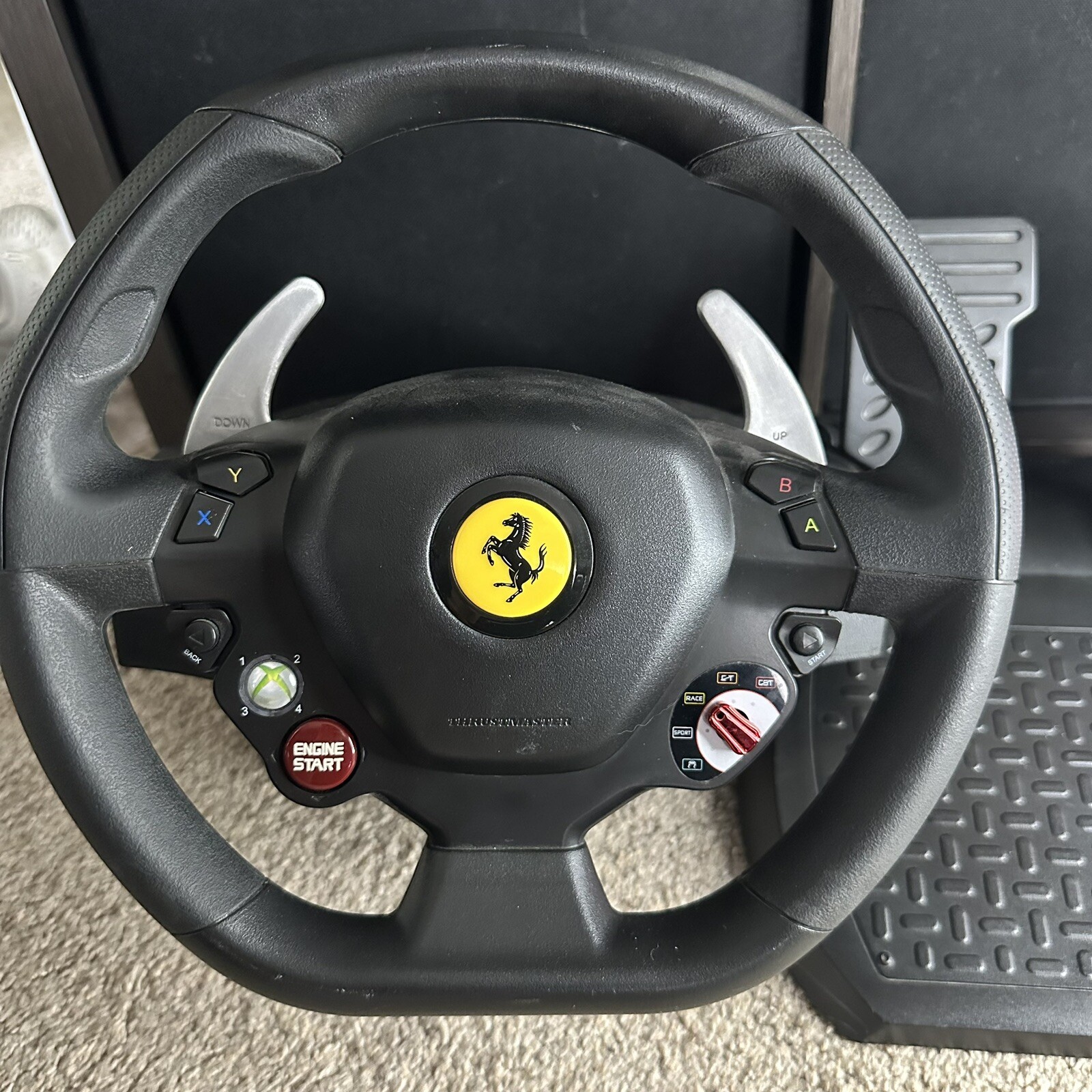 Thrustmaster TX Racing Wheel & Pedal Ferrari 458 Italia Edition Xbox 360 Black. Condition is Used. Shipped with USPS Ground Advantage.