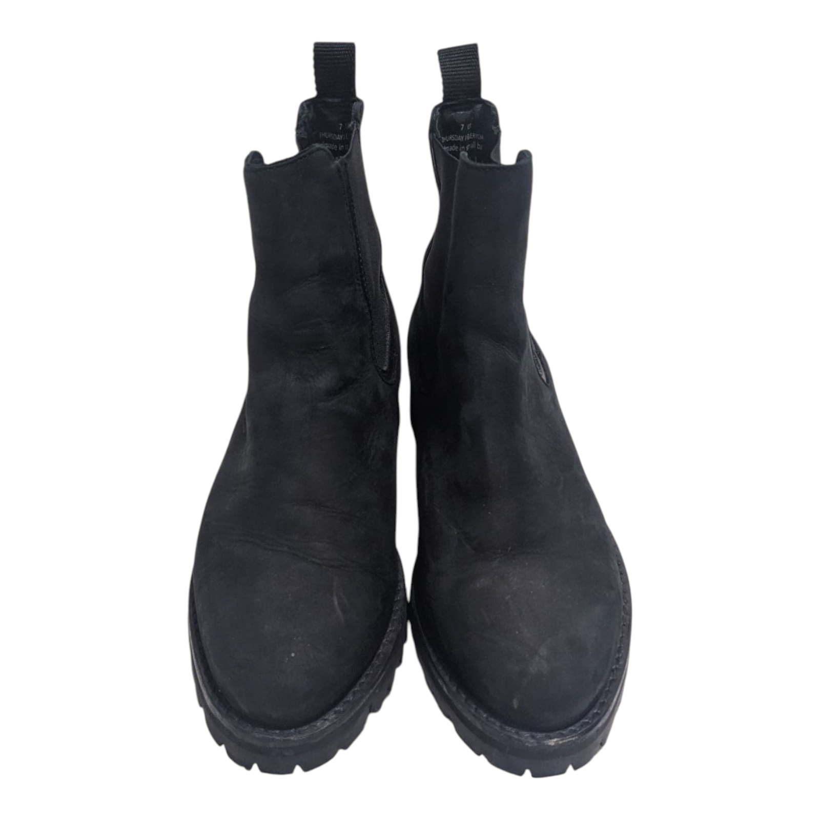 Description: Step out in timeless style with these Thursday Boots Legend Chelsea Boots in Black Matte Leather, designed for durability, comfort, and a sleek, modern silhouette. A wardrobe essential for any man looking to elevate his everyday style. Product Details: Brand: Thursday Boot Company Model: Legend Chelsea Boot Color: Black Matte Material: Full-grain leather upper Size: Men’s 7 US Fit: True to size (standard D width) Condition: Used Features: Elastic side panels for easy slip-on wear Goodyear welt construction for long-lasting durability Comfortable cork-bed midsole and shock-absorbing outsole Weather-resistant, ideal for all-season wear These boots combine rugged performance with refined style—perfect for both casual and dressier looks.