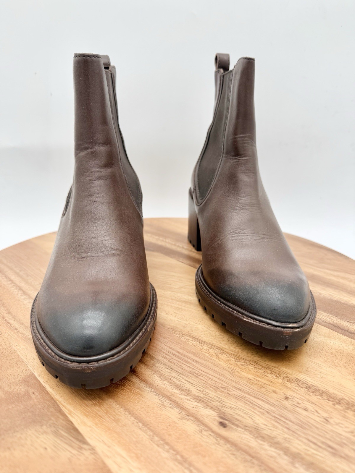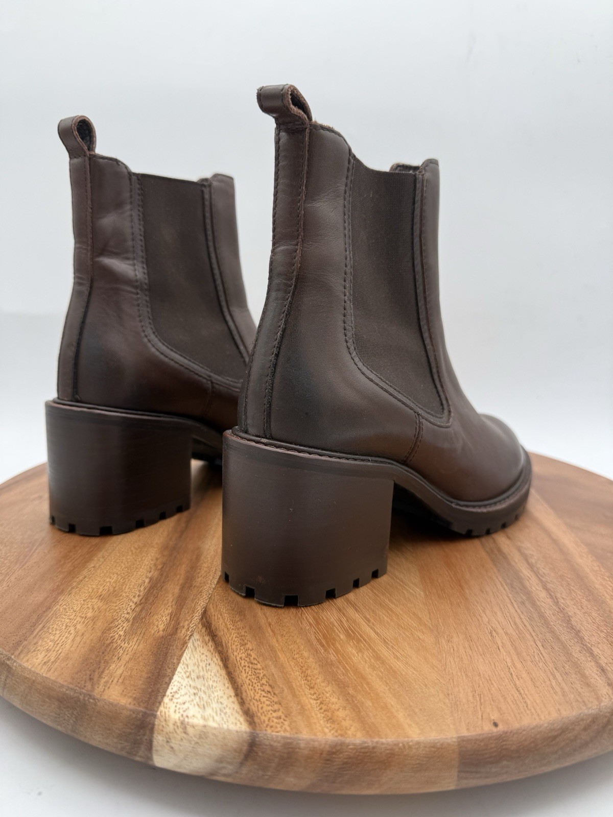 Thursday Co Knockout Chunky Heel Brown Leather Women's Chelsea Boots Size 8 pull on smooth brown leather 2.5" chunky heel great pre-owned condition women's 8 keywords: fall leather summer everyday chelseaboot thurdayco style