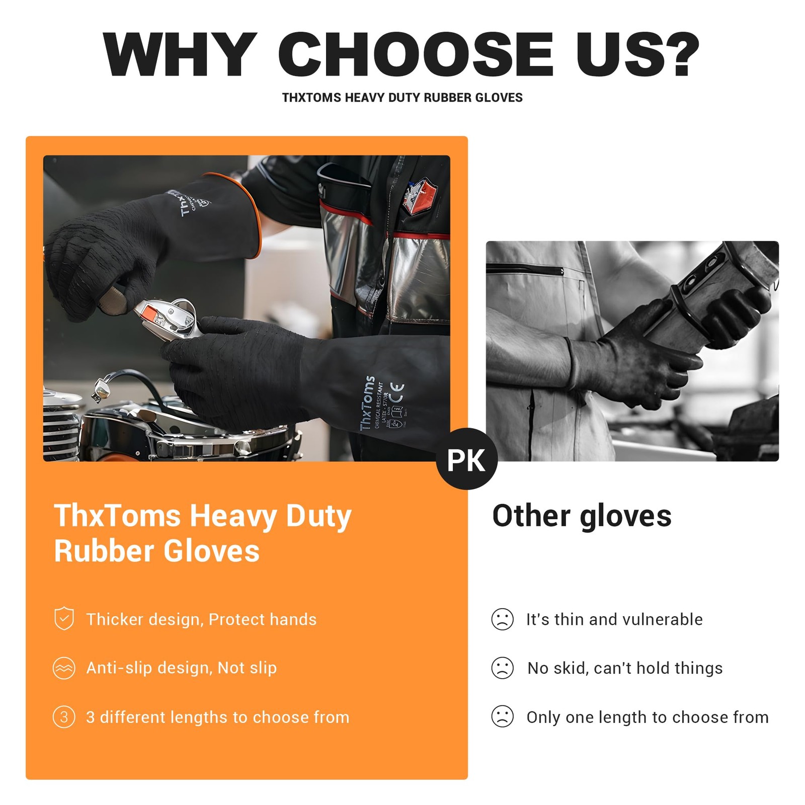 😍Soft and Thick: Reinforced durability, ideal thickness and soft latex give a fantastic secure protection yet still tactile sensitive. 😍Chemical and Tear Resistance: High-grade natural latex possess a excellent chemical resistance and tear resistance. 😍Anti-Slip Design: Upgraded anti-slip texture provides better grip than standard gloves, making it more secure to grasp tools. Big Size Design: Our gloves are suitable for most hand (fits more perfect to the one wearing Large, Extra large or bigger size gloves at usual). It is comfortable for your hand's feeling with larger size. 😍Versatile Features: Reusable mechanic gloves,cleaning gloves or gardening gloves used by housewife, mechanics, agricultural, construction, researchers, for machine repair, yard work, aquarium, chemical processing, laboratory and more!