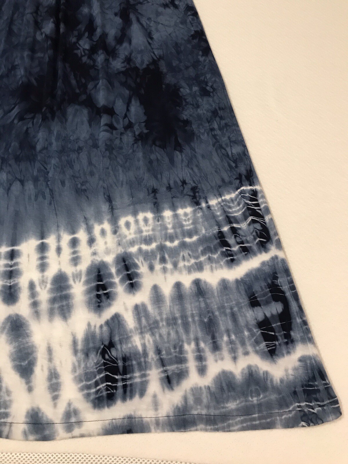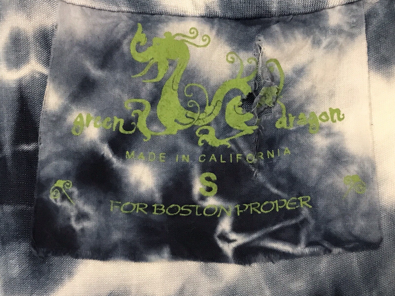 The Green Dragon Boston Proper Tie Dye Maxi Dress is a stylish and comfortable piece perfect for a casual day out or a party. The dress features a sleeveless design with a V-neckline, giving it a contemporary yet bohemian vibe. Made of spandex and rayon, the dress is machine washable and easy to care for. The tie-dye pattern in shades of blue adds a hippie and 60s touch to the overall design. Perfect for those who love colorful and beachy outfits, this maxi dress is a must-have for any wardrobe. In a smoke free home.