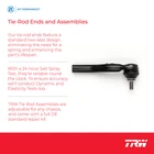TRW JTE7593 Tie Rod End for Acura TSX: 2004 - 2008, Honda Accord: 2003 - 2007 TRW Premium Tie Rod Ends are designed with low friction polymer and high quality bearings to enhance steering performance. Safety matters - superior OE grade chassis parts from the global leader in automotive safety systems that meet or exceed OE performance. They feature long lasting dust covers with polished ball pins and uniquely developed grease. All our chassis parts are always tested to the extreme on the road and in the laboratory. Included is OE quality hardware installation accessories, where applicable, and the latest high performance designs and OE quality materials. - Every TRW part has four levels of testing/technical/audit review before approval is given including endurance testing of 500K cycles - TRW range of tie rods include the latest high performance designs, OE quality materials, and meet or exceed OE standard for quality and performance - Long lasting dust covers made from the highest quality rubber, improving reliability and life-span of the part ]]>