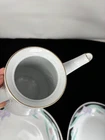 This is an exquisite 8-person Tienshan Fine China Dinner Set. The gorgeous Isabella collection is perfect for any occasion with it's incredible contrasts of white, black and floral. The set includes 30 pieces, with 8 dinner plates, 8 bowls, 8 tea saucers, 1 serving platter, 1 serving bowl, 1 creamer, 1 sugar bowl with lid, and tea pot. The floral pattern adds a touch of elegance to the set, making it an ideal choice for multipurpose or formal occasions. Crafted in China, this original Tienshan set is high polished and features a timeless vintage design. The set is both microwave and dishwasher safe, making it practical for everyday use. Add a touch of sophistication to your dining experience with this beautiful Tienshan Isabella Collection fine china set. This set is in amazing condition, with no cracks or chips noted. There are a couple minor scrapes on the paint of a couple of the pieces, and minor wear of the gold trim, but all as to be expected with a vintage set having hosted many events!