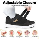 Tiestra Mens Wide Width Walking Sneakers Lightweight Casual Shoe for Diabetic, Edema, Swollen Feet, Neuropathy The Tiestra Men's Wide Width Walking Sneakers are designed specifically for those with diabetic needs, offering a lightweight and cushioned shoe for comfortable wear. These casual sneakers feature a solid pattern with a closed toe design and a hook & loop closure for easy adjustment. Made with canvas and PU leather upper material, these shoes also have a synthetic lining, foam insole, and a rubber outsole for durability and non-slip functionality. Ideal for outdoor activities in all seasons, these sneakers offer adjustable straps and breathable features for added comfort and support. With the Tiestra brand logo accents, these shoes combine style with functionality for everyday wear. Wide-Toe Box -Perfect for wide feet, bunions, or hammer toes, these shoes offer ample space to reduce pressure. The high-instep design provides extra comfort for conditions like plantar fasciitis, flat feet, or swelling, ensuring all-day relief Diabetic-Friendly - Designed for diabetic foot care, these shoes feature dual adjustable hook-and-loop straps for a customizable fit. Easy to put on and remove, they accommodate swelling, bandages, or orthotics without irritation Cushioning & Arch Support - The EVA midsole and cushioned insole deliver cloud-like comfort with every step. Built-in arch support reduces foot fatigue, making these ideal for standing, walking, or recovering from foot pain Non-Slip & Stable Grip-The advanced rubber outsole provides exceptional slip resistance on wet or uneven surfaces. Walk confidently indoors or outdoors with enhanced motion stability and traction Versatile for All-Day Wear-From indoor lounging to travel, commuting, or dog walking, these lightweight shoes adapt to any activity. The breathable, soft upper ensures year-round comfort—no breaking in needed
