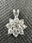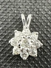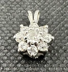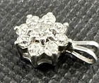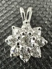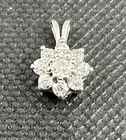 Add a touch of vintage glamour to your style with this stunning diamond pendant. The pendant features a snowflake shape and is custom designed with 9 brilliant cut diamonds set in 14k white gold. The prong setting style adds an elegant touch to the piece, making it perfect for any occasion. This fine jewelry item is handmade and original, with a unique antique feel. The pendant is perfect for women who love to add a touch of vintage to their wardrobe. The silver color and white diamond stones make it a timeless piece that will never go out of style. I had this made from a Tiffany cocktail ring about 30 years ago. It was my grandmother’s and it was too much as a ring for my wife, hence pendant. Thanks for looking!