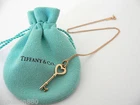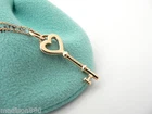 Overview: Time to show off your awesome Tiffany necklace! Offered for sale is a classic and very pretty Tiffany and Co. 18K Gold Heart Key Charm Necklace. Wonderful necklace that fits a lifestyle on the go -- the necklace can be worn to almost any occasion! Hanging from its beautiful Tiffany & Co. 18K Gold curb chain is a super pretty 18K Heart Key charm. It is simple and yet looks extremely elegant. Imagine the piece with your professional office attire ... Now imagine it with jeans or weekend wear ... Perfect in every way! The item is very comfortable to wear, and is in excellent condition. A classic Tiffany piece to start or add to your collection. Both the pendant and chain are fully hallmarked and guaranteed to be 100% authentic. Wonderful present for yourself or anyone you love! Will surely delight! It will come with its Tiffany pouch as shown! Perfect and ready for gifting! Particulars: Size & Measurements: The necklace is 16.15 inches from end to end. The Heart Key Charm is 1.25 inches long - including the bail (Super pretty piece!) Metal and Hallmarks: T & Co. / 750 (on Heart Key Charm) Tiffany & Co. / 750 (on Chain Clasp) Solid 18K Yellow Gold Please check out my other unique and interesting Tiffany items on sale.