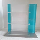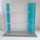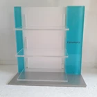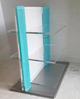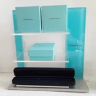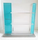 A LOVELY and Unique... Two sided Tiffany display with 6 shelves marked Tiffany & Co. on both sides. Clear and Tiffany Teal / Blue. Lucite with heavy steel base. Looks like Glass! Great gloss and shine! Measuments are 10.5" x 10.5" x 6.25" Does have a couple of scuffs as pointed out In pics. You can display sunglasses or your Tiffany jewelry collection! Tiffany boxes and cups not included! Will be packed with lots of bubble wrap and much care. SHIPPED FAST ⚡with USPS Standard Mail for $19.99