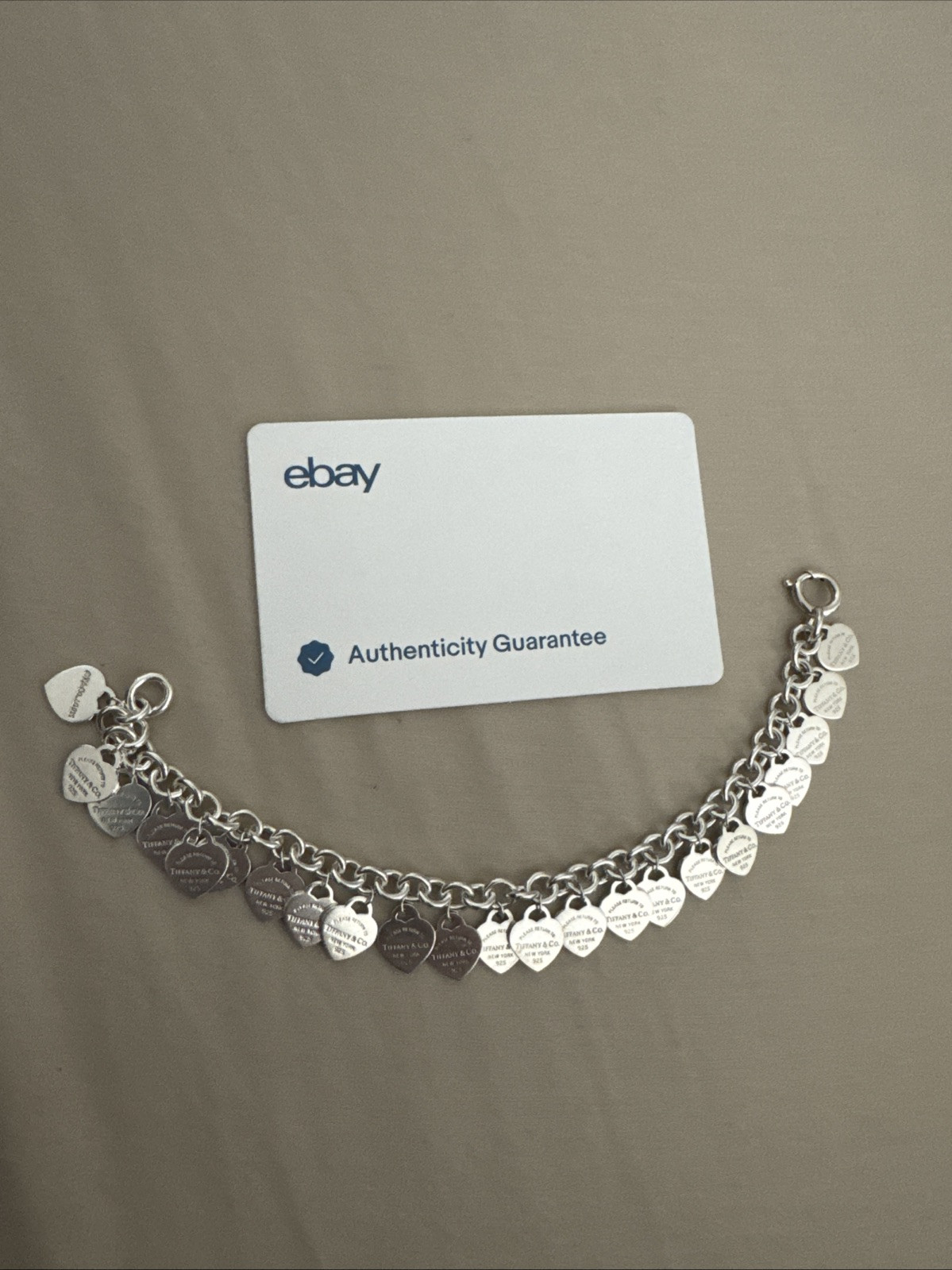 Crafted with the finesse that's synonymous with Tiffany & Co., this Return to 23 Multi Tag Hearts Bracelet is an emblem of elegance and personal charm. The bracelet's sleek silver construction, boasting a purity of 925, provides a lustrous backdrop for its heart-shaped charms, each telling a unique story. Measuring at a comfortable 7.5 inches, this piece is a versatile addition to any jewelry collection, perfect for both casual and formal occasions. As part of the cherished Tiffany & Co. Hearts collection, it embodies the brand's commitment to beauty and craftsmanship without the need for stones.