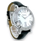 Tiffany Co. Atlas Z1301 Quartz QZ Black Leather Belt Leather White White Wom