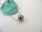 Overview: Do you know which items made Tiffany a world renowned company? You just stumbled upon one of them! Offered for sale is a wonderful vintage Tiffany and Co. Sterling Silver and Black Enamel Stripe Ball Charm necklace. Super cool / whimsical / and very versatile necklace! The piece is not only unique, but also very hard to find and come by, so grab it while you have the chance! Fantastic necklace that is classic, elegant, and very stylish ... It is a piece that pretty much goes with anything you can even put on ... Great piece to wear to work, going to dinner with friends in jeans and a crisp white shirt or a pretty sundress. The necklace may be vintage but style is definitely classic Tiffany, and the details of this piece is just amazing. It is very comfortable to wear, and is in excellent condition. A wonderful Tiffany piece to start or add to your collection. The necklace is fully hallmarked and guaranteed to be 100% authentic. Matching Black Enamel Ball Earrings are also available for sale in a separate listing. Please have a look! It will come with its Tiffany pouch as shown! Perfect and ready for gifting! Wonderful present for yourself or anyone you love! Will surely delight! Particulars: Size & Measurements: The necklace is 16.25 inches from end to end. Metal & Hallmarks: Tiffany & Co. / 925 Solid 925 sterling silver Please check out my other unique and interesting Tiffany items on sale.