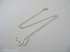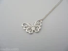 Overview: Offered for sale is a gorgeous and rare Tiffany & Co Nature Butterfly necklace. Crafted from solid and bright Tiffany silver, yet maintains its delicate and feminine feel! You will feel very playful and fun while wearing this- especially while you are outdoors (during the summertime). I am 100% positive that you will want to use this piece over and over again. Your friends will be fascinated by this gorgeous piece – it is almost like a work of art! The look of the piece is simple, classic, and very elegant. The pair works with pretty much anything you put on … and adds a touch of pizzazz to it! A perfect Tiffany piece to start or add to your collection. Both pendant and chain are fully hallmarked, in excellent condition, and guaranteed to be 100% authentic. Wonderful present for yourself or anyone you love! Will surely delight! Particulars: Size & Measurements: The butterfly's wing span is approx. 0.9 inches. The chain is 16 inches from end to end. Metal & Hallmarks: T & Co. / 925 (on Butterfly pendant) Tiffany & Co / 925 (on chain clasp) Solid 925 sterling silver Please check out my other unique and interesting Tiffany items on sale.