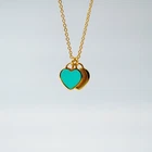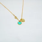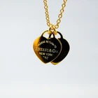 Tiffany & Co. Gold Tone Blue Mini Double Hearts Pendant Necklace 48cm Gift Box