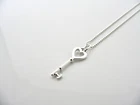 Overview: Offered for sale is a fantastic and very pretty Tiffany and Co. Sterling Silver Heart Key Necklace. Wonderful necklace that fits a lifestyle on the go -- the necklace can be worn to almost any occasion! Hanging from its beautiful Tiffany & Co sterling silver bead chain is a very pretty Heart Key pendant. It is simple and yet looks extremely elegant. Perfect way to say "Here's the key to my heart :)" without ever having to say a word - believe me, she will know! :) Imagine the piece with your professional office attire ... Now imagine it with jeans or weekend wear ... Perfect in every way! The item is very comfortable to wear, and is in very good condition. A classic Tiffany piece to start or add to your collection. Both key pendant and chain are fully hallmarked and guaranteed to be 100% authentic. Wonderful present for yourself or anyone you love! Will surely delight! Particulars: Size & Measurements: The key pendant is approx 1.25 inches. The chain is 18 inches long. Metal & Hallmarks: T & Co. / 925 (on key pendant) Tiffany & Co. / 925 / AG (on chain clasp) Solid 925 sterling silver Please check out my other unique and interesting Tiffany items on sale.