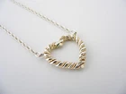 Overview: Time to show off your awesome Tiffany necklace! Offered for sale is a gorgeous and wonderful Tiffany and Co. Sterling Silver 18K Gold Rope Heart necklace. Guaranteed to be a conversation starter! It is just like wearing a piece of art work right on your neck - without the extremely high price! Very elegant, chic and comfortable piece! You will feel both sexy and elegant while wearing this piece. Great necklace to wear for a night in town, at a party, or just going to dinner with friends in jeans or a pretty dress. The style is classic Tiffany, making it a piece that you will most certainly use over and over again. No longer in production, it is perfect for the Tiffany collector. A great Tiffany piece to start or add to your collection. The piece is fully hallmarked and is guaranteed to be 100% authentic. Wonderful present for yourself or anyone you love! Will surely delight! Particulars: Size & Measurements: The necklace is 19 inches from end to end. Metal & Hallmarks: Tiffany & Co. / 925 / 750 Solid 925 sterling silver Please check out my other unique and interesting Tiffany items on sale.