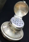 Tiffany & Co Makers Sterling Powder Container / Shaker. This measures 4 1/2" tall, 1 7/8" across. Dent on side, very hard to picture. The bottom is stamped Tiffany & co. Makers Sterling 925 1000 17158 14158 Shipped with USPS Priority Mail. Shipping will be $10.