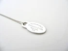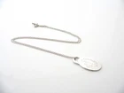 Overview:Offered for sale is a wonderful Tiffany classic. Whether you are just starting your Tiffany collection or are thinking of adding another piece, this one is perfect for you. Tiffany & Co.'s Sterling Silver Oval Tag necklace is a Tiffany classic that will never go out of style. It will most certainly be a piece that you will turn to over and over again, so it is great value for your money! It is a wonderful necklace that fits a lifestyle on the go -- the necklace can be worn to almost any occasion! It is simple, elegant, and classic all rolled into one necklace. Imagine the piece with your professional office attire ... Now imagine it with jeans or weekend wear ... Perfect! As always, the item is fully hallmarked and guaranteed to be 100% authentic.Wonderful present for yourself or anyone you love! Will surely delight! Particulars: Size & Measurements: The necklace is approx. 16.5 inches from end to end. The charm is 0.95 inches. Metal & Hallmarks: Tiffany & Co. / 925 Solid 925 sterling silver Please check out my other unique and interesting Tiffany items on sale.