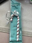 Add a touch of elegance to your Christmas decor with this beautiful handmade glass ornament from Tiffany & Co. The red and white stripe pattern, candy cane shape, and medium size make it the perfect addition to your tree. This artist-designed piece features hand-blown glass, making it a unique and original item for collectors. The ornament comes from the Tiffany & Co. brand and has no vintage or reproduction features. It includes only one item and is part of the Ornaments collection. Celebrate the Christmas season with this beautiful decoration that will surely bring joy and color to your home.