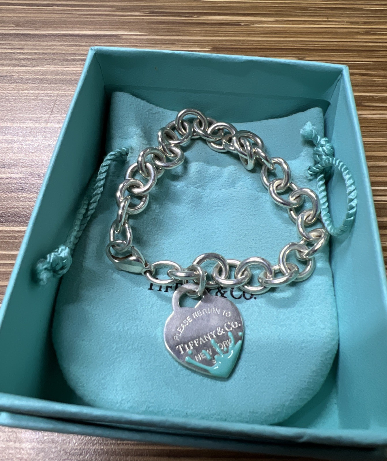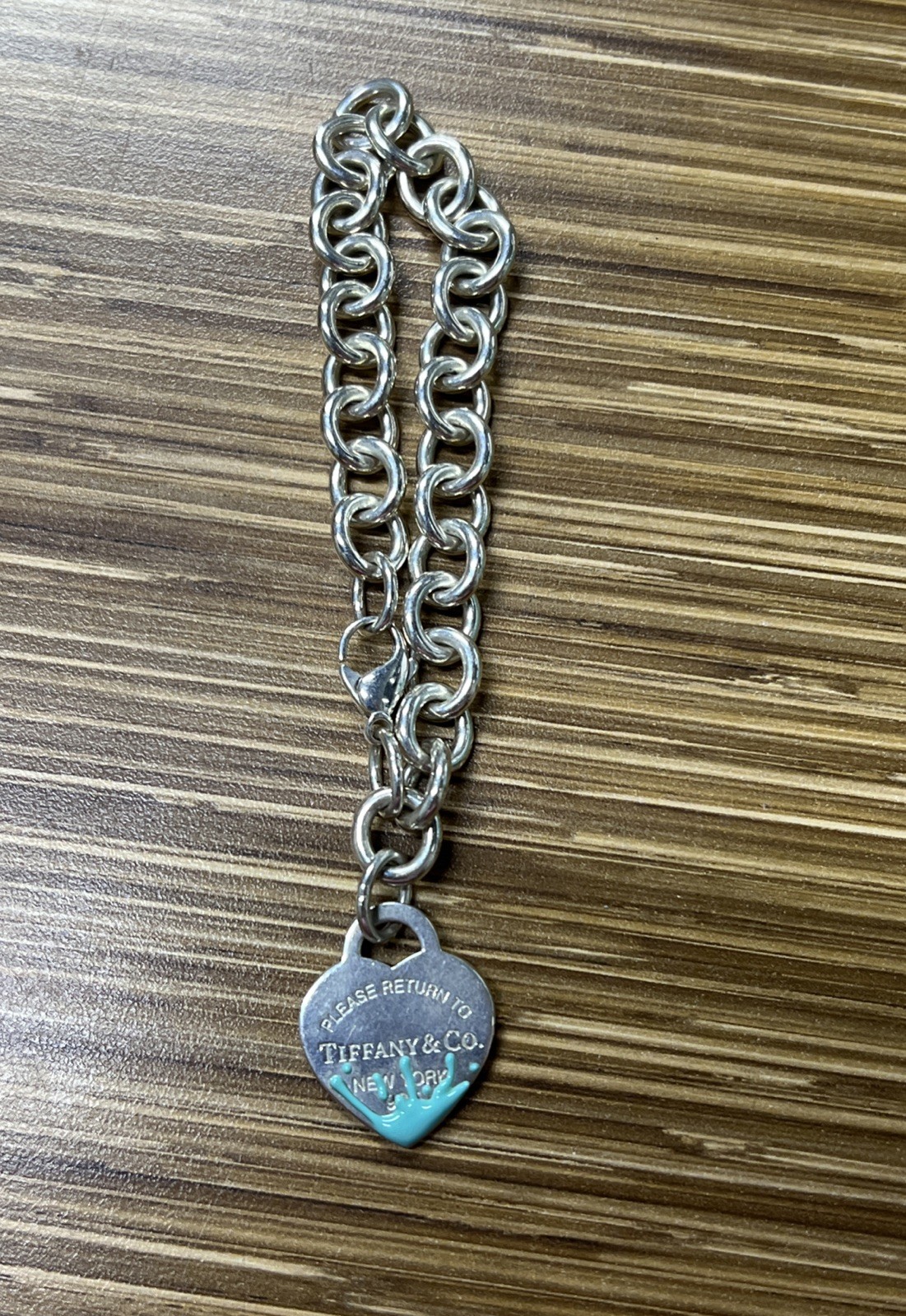 Tiffany & Co. Return To Blue Enamel Splash Heart Link Bracelet. Condition is Pre-owned. Shipped with USPS First Class.